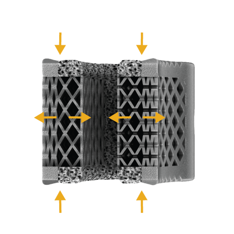 The F3D Curved interbodies leverage the benefits of Mimetic Metal® technology which emulates key characteristics of natural bone to provide an optimal structure and environment for healing.