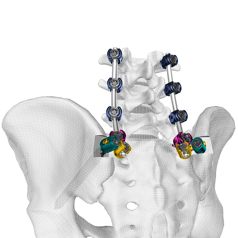 Tiger Iliac provides connector and screw options to extend Tiger constructs to the ilium.